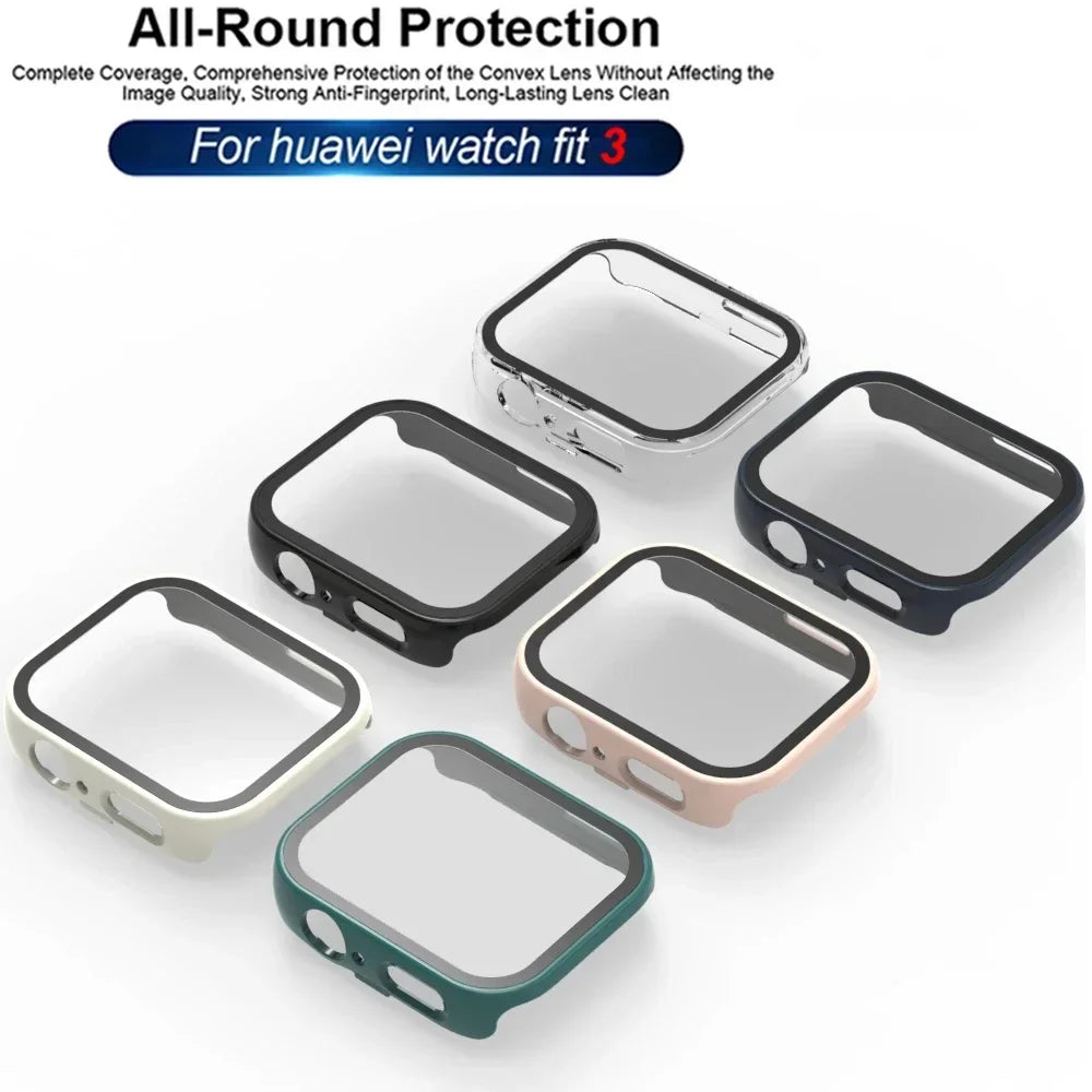 Case for Huawei Watch Fit 3 Accessories All-around PC Bumper Frame Tempered Glass Screen Protector cover HUAWEI fit 3 strap