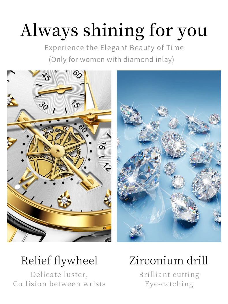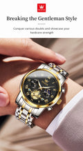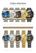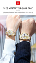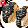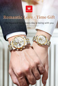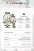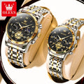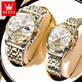 OLEVS Top Brand Couple Watches Stainless Steel Waterpoof Chronograph Moon Phase Flywheel Design Lover's Wristwatch for Men Women