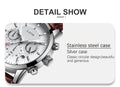Material: This exquisite and luxurious dial is made of stainless steel. The dial is covered with ore crystal glass to increase its robustness and is not easily scratched and worn.Leather strap, soft, sweat resistant and comfortable to wear.
